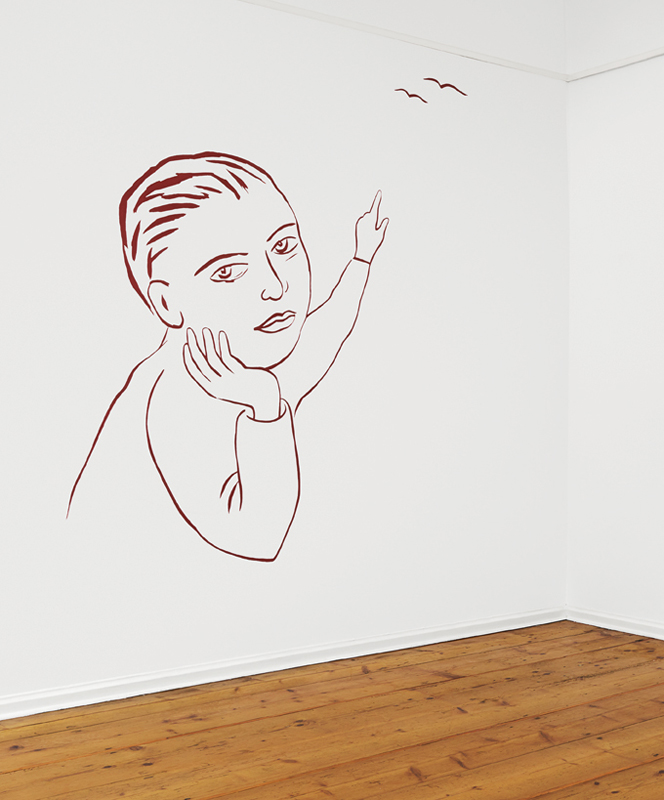 Philosophical Constructs continues Veronika Dobers´interest in the elementary topics of human existence. Based in Germany, besides drawings on paper she works primarily in the technique of Hinterglasmalerei (reverse painting on glass). She uses acrylic glass instead of glass plates. The Plexiglass is at once picture background and foreground layer. To the viewer, it is both a window into the world of the picture and a partition wall keeping away the events of the picture. This creates an unusual tension between proximity and remoteness, which is conductive to her artistic intensions.
