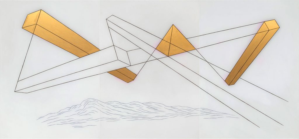 The works in this show belong to the work group Beyond the Horizon II. They were created in 2023 and 2024. The images visualize constructs of human thinking. Black objects represent unknown thoughts or the unknown itself. Man is confronted with the fact that it is impossible to grasp reality in its entirety. Every “reality” is just a construct based on the knowledge and experience of the individual.In this sense, the work The Secret of the Pyramids is an ironic metaphor for the constant search for knowledge, which is often misleading.