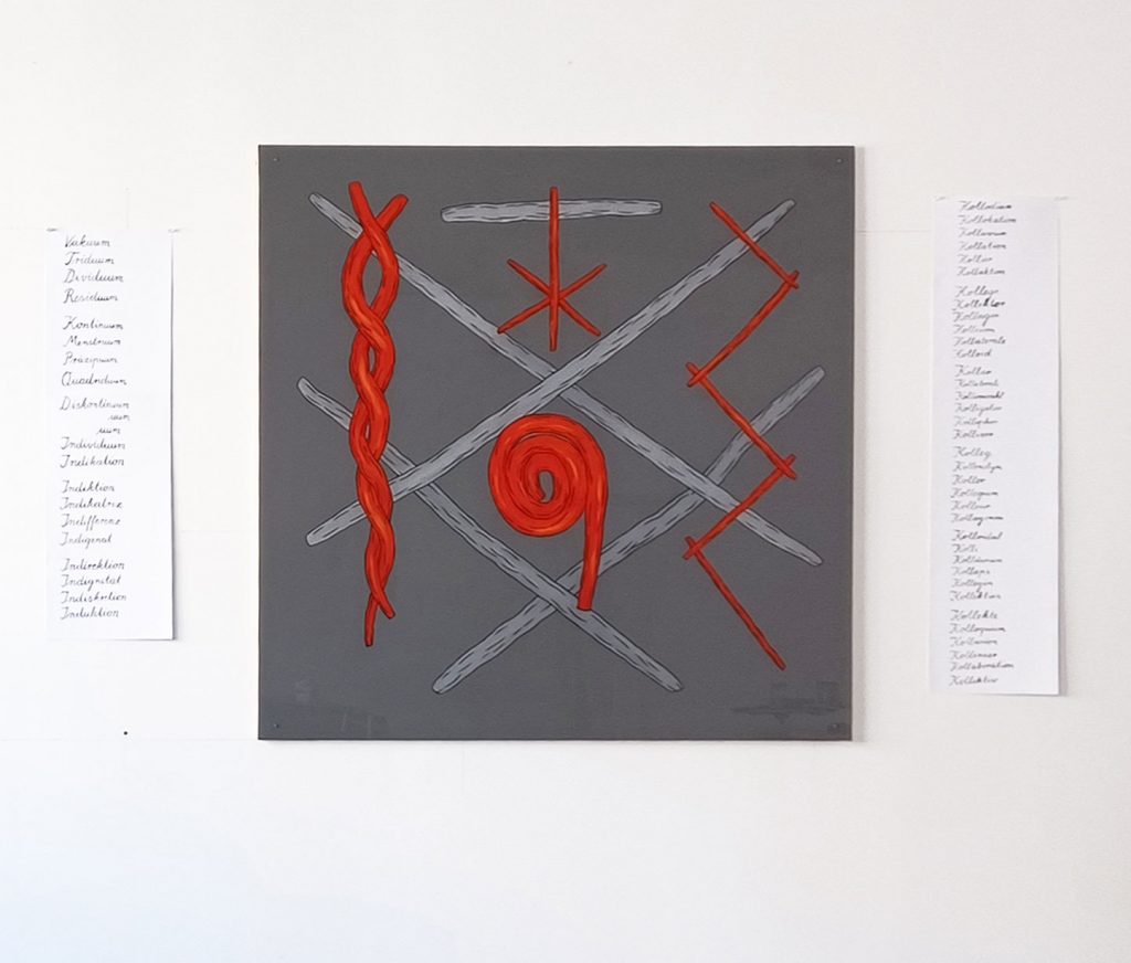 The exhibition is complemented by works from the new work group Inflamed, a continuation of the work group Red Lines.